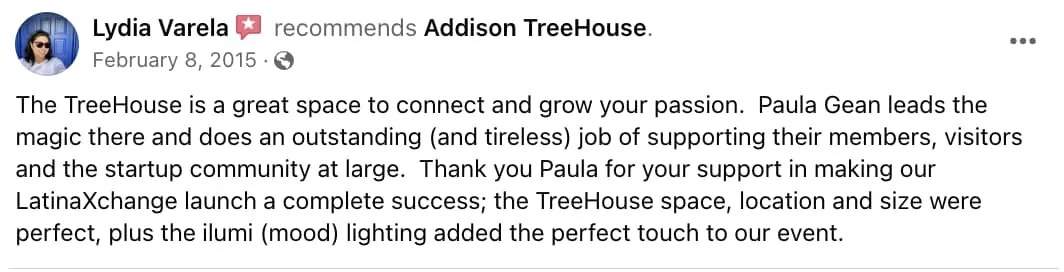The Addison Treehouse is a startup resource center and coworking space created by a public/private partnership between the Dallas Entrepreneur Center (DEC) and the Town of Addison’s Economic Development Department. I was hired by the DEC’s CEO as the inaugural executive director of the Treehouse with the priority to grow membership and branding.